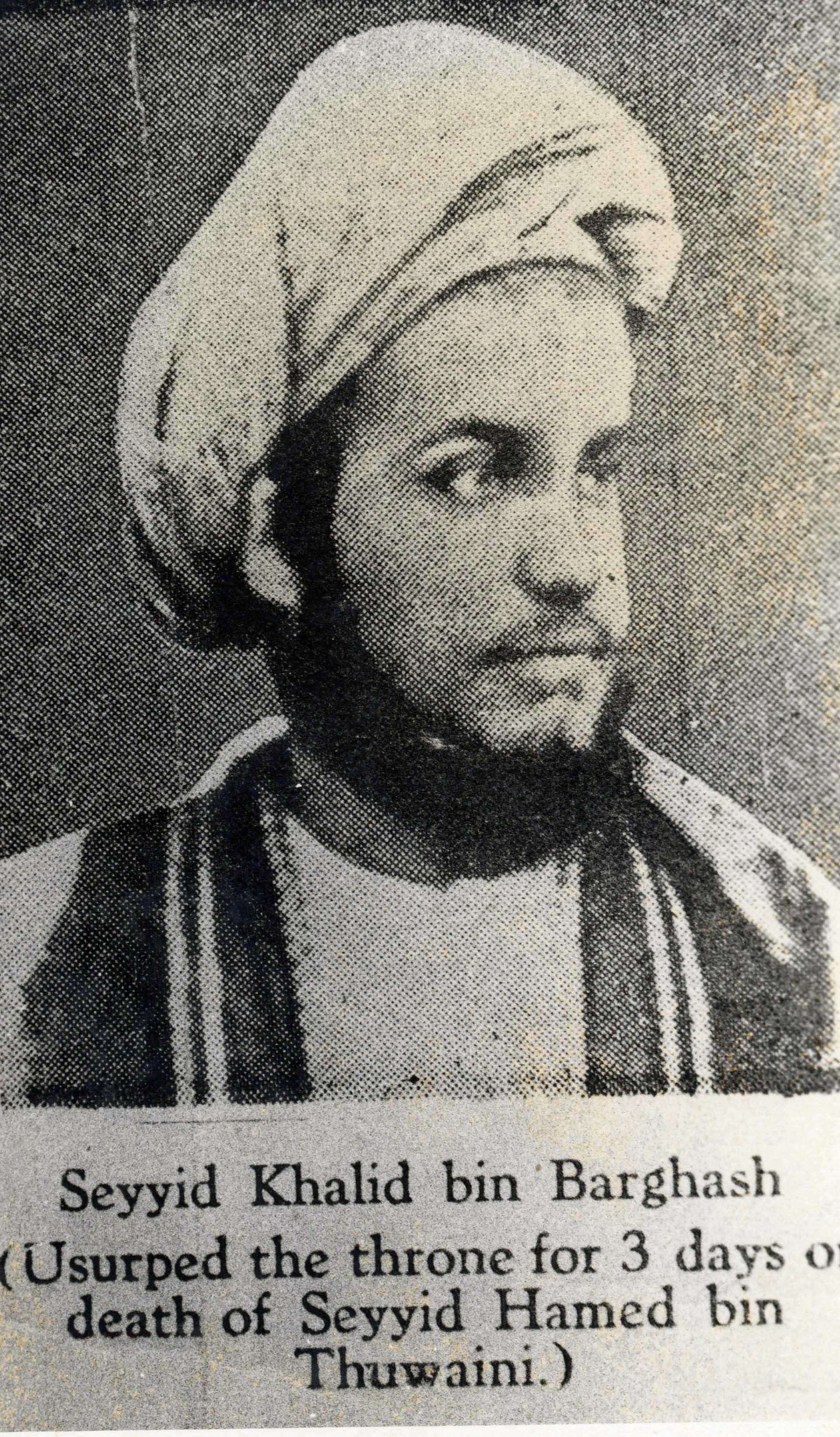 The contender with the longest sword when Sayyid Hamid died was clearly Khalid bin Barghash. A young Prince of 29, he had the backing of the majority of the the large land holders an the local business leaders.