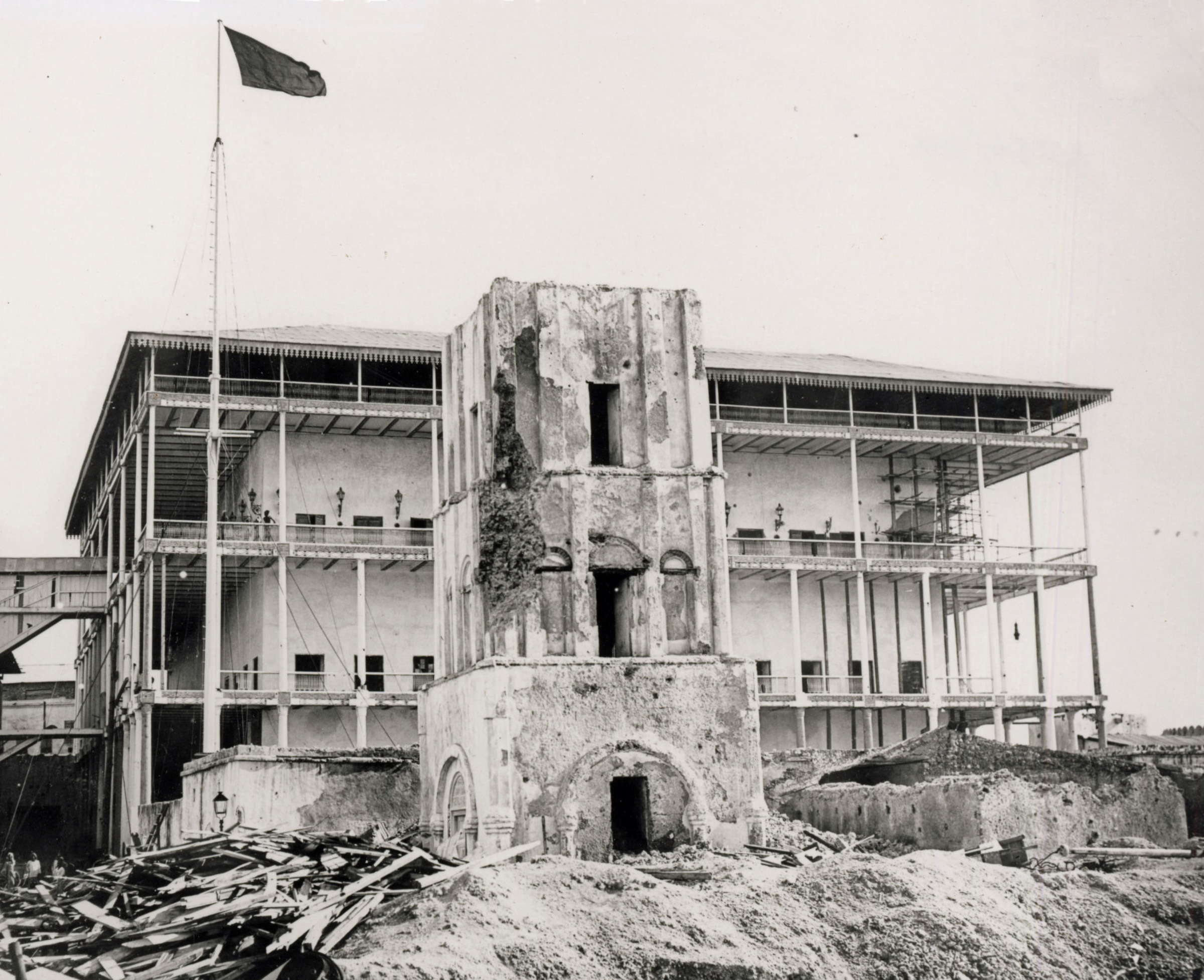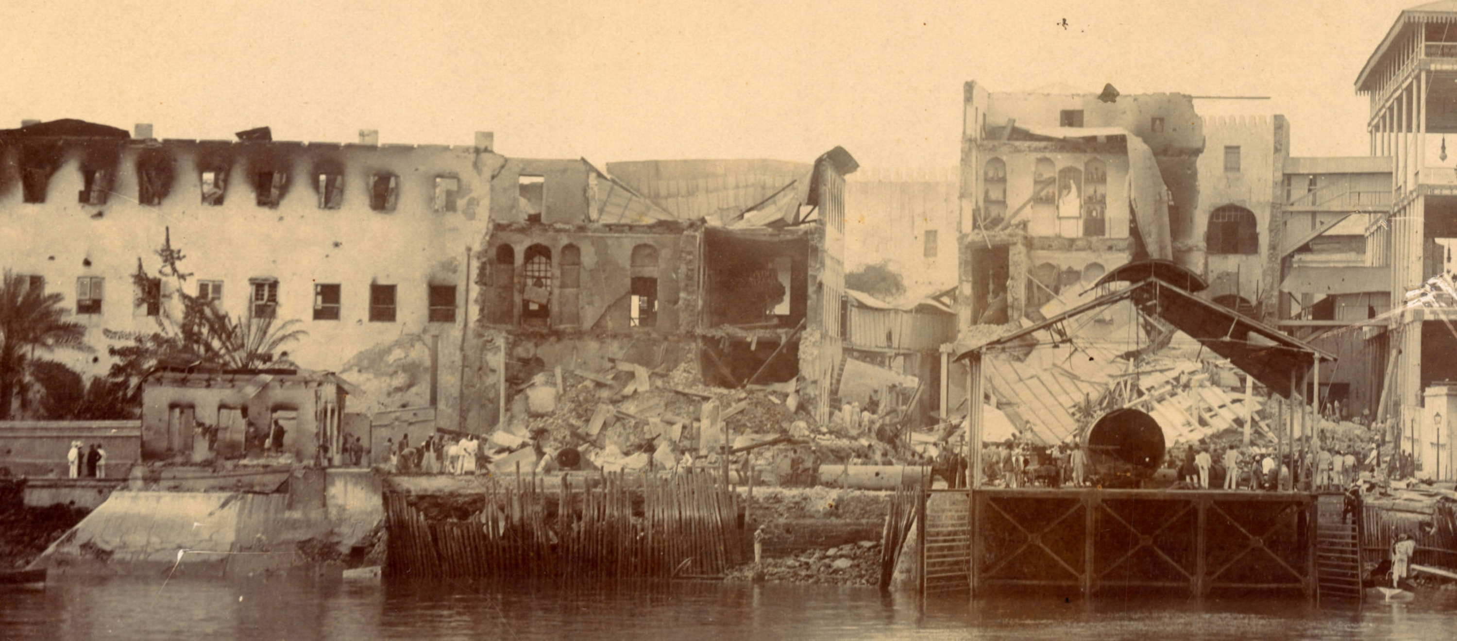 As for the damaged city, the palace was destroyed completely and never rebuilt. The Harem building was also destroyed but a truncated replacement building was soon put up. The damage to the lighthouse in front of the House of Wonders was irreparable but the Beit el Ajaib (H. of W.) itself was not fatally damaged and so a new lighthouse attachment was added to that Palace when it was repaired in 1899.