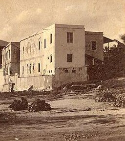 Upon arrival they were greeted by French Catholic Missionaries. The Catholics had preceded the English missionaries arrival at Zanzibar by almost fouryears.In September 1860 the powerful French religious figure Abbe Favat had secured an agreement from Seyyid Said's successor to allow him to move his headquarters from Reunion Island to Zanzibar.By December his group of "two secular priests and six nuns, ("Filles de Marie") were living near Shangani point in a large convent house which also had a small chapel. This "convent building" is said to have been constructed in 1860 but this construction may have in fact been an extensive renovation of a pre-existing house. The chapel in this house was the first church established in Zanzibar in over 200 years.