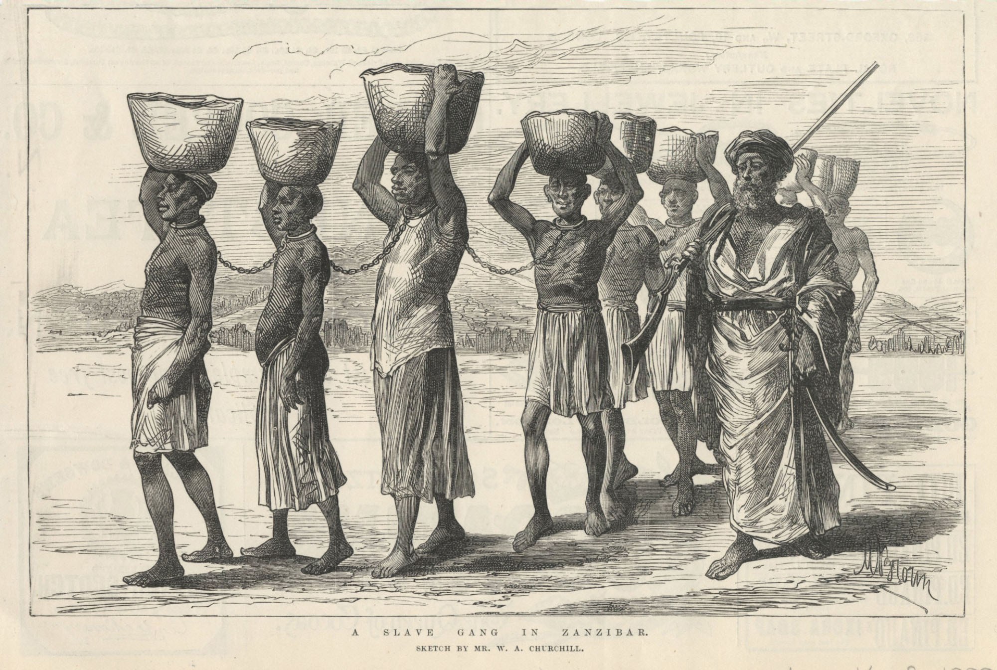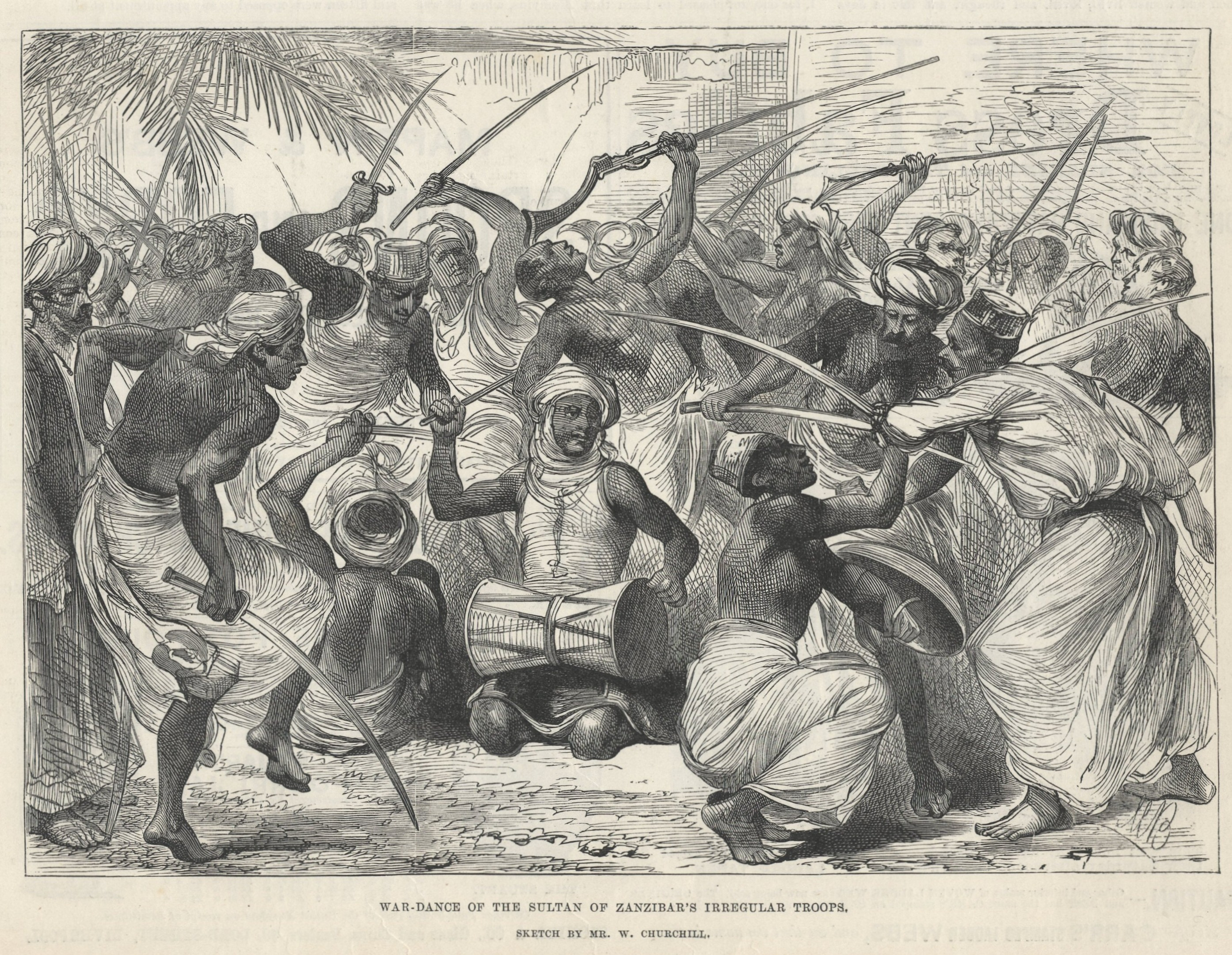 William A. Churchill was the younger brother of the British Counsel at Zanzibar in the late 1860's. He came for a visit to the Islands bringing only his talent and his sketch pad but these resulted in some remarkable views of 19th century Zanzibar.