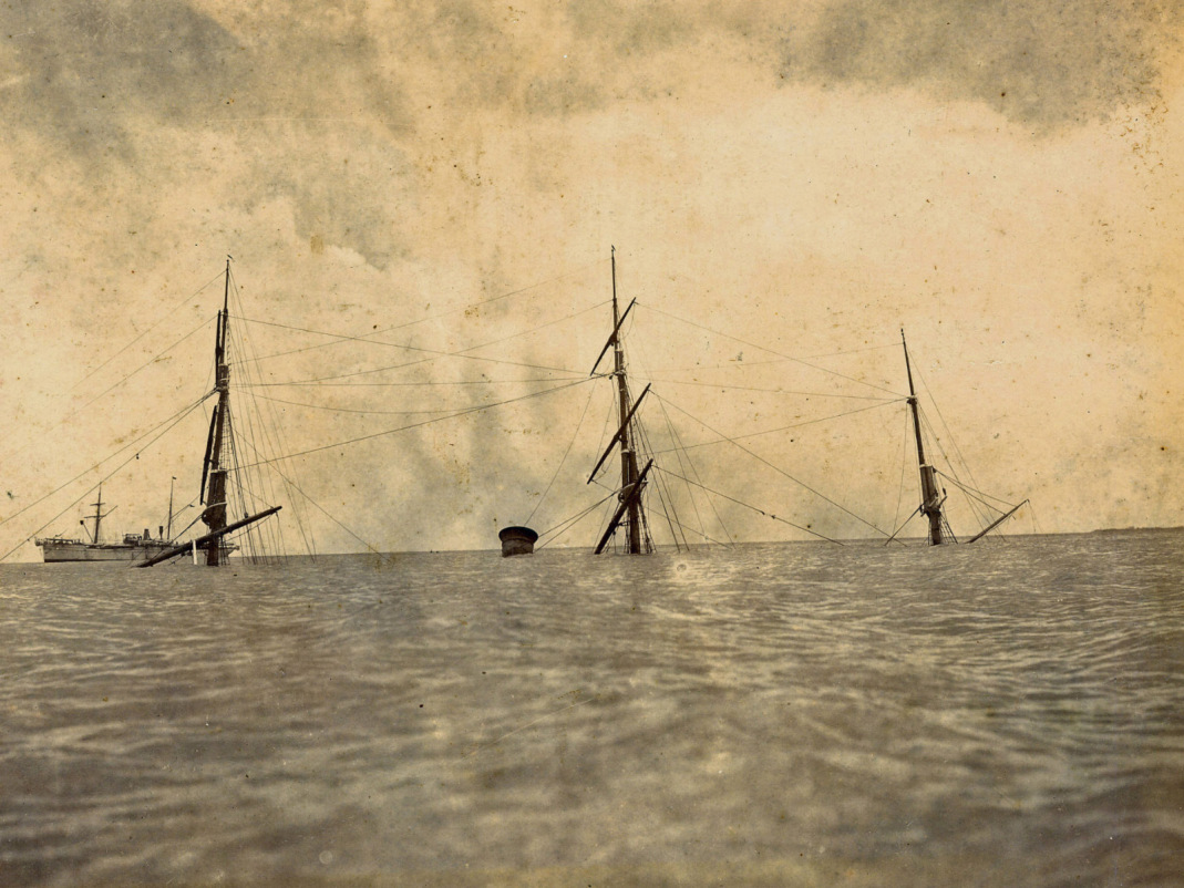 The ship sunk gently to the shallow seabed, its' masts still showing above the waterline. The fire from the Zanzibari on shore had slackened, as one outclassed gun after another was put out of action. The British fire too seem to lessen as gunners sought targets in vain amidst the smoke, and officers began to look for some sign of surrender.